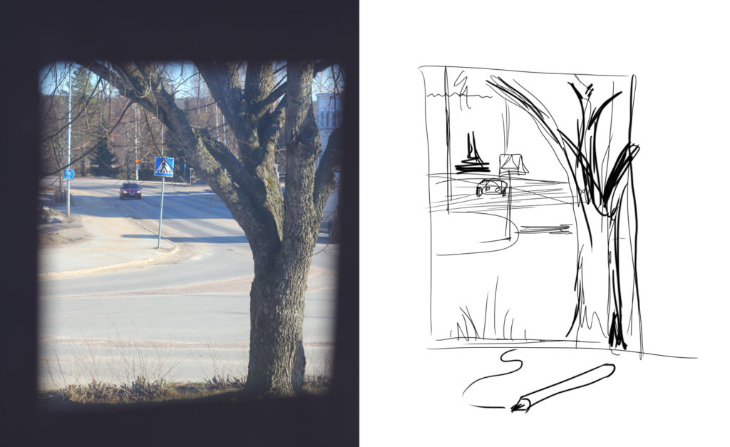 Jos saat vanhemmiltasi luvan, jätä kehys kiinni ikkunaan. Piirrä sama maisema muutaman päivän päästä. Voit testata myös sitä, miten ilta tai aamu vaikuttaa näkymään ja sen väreihin.